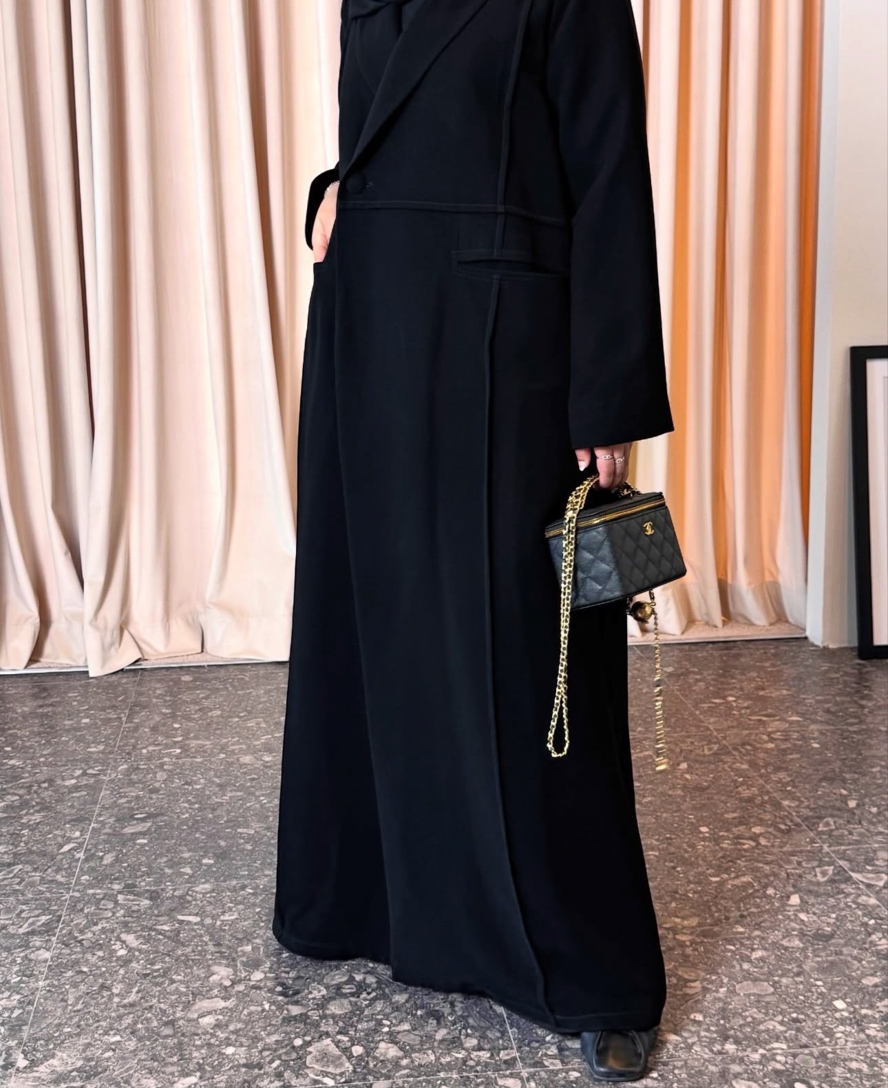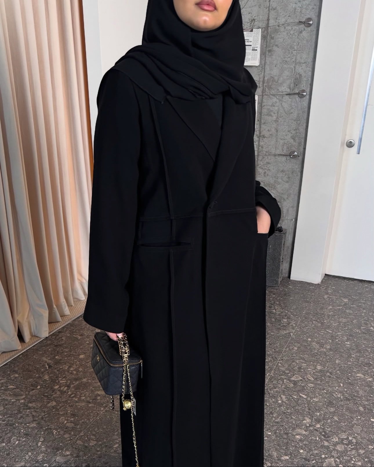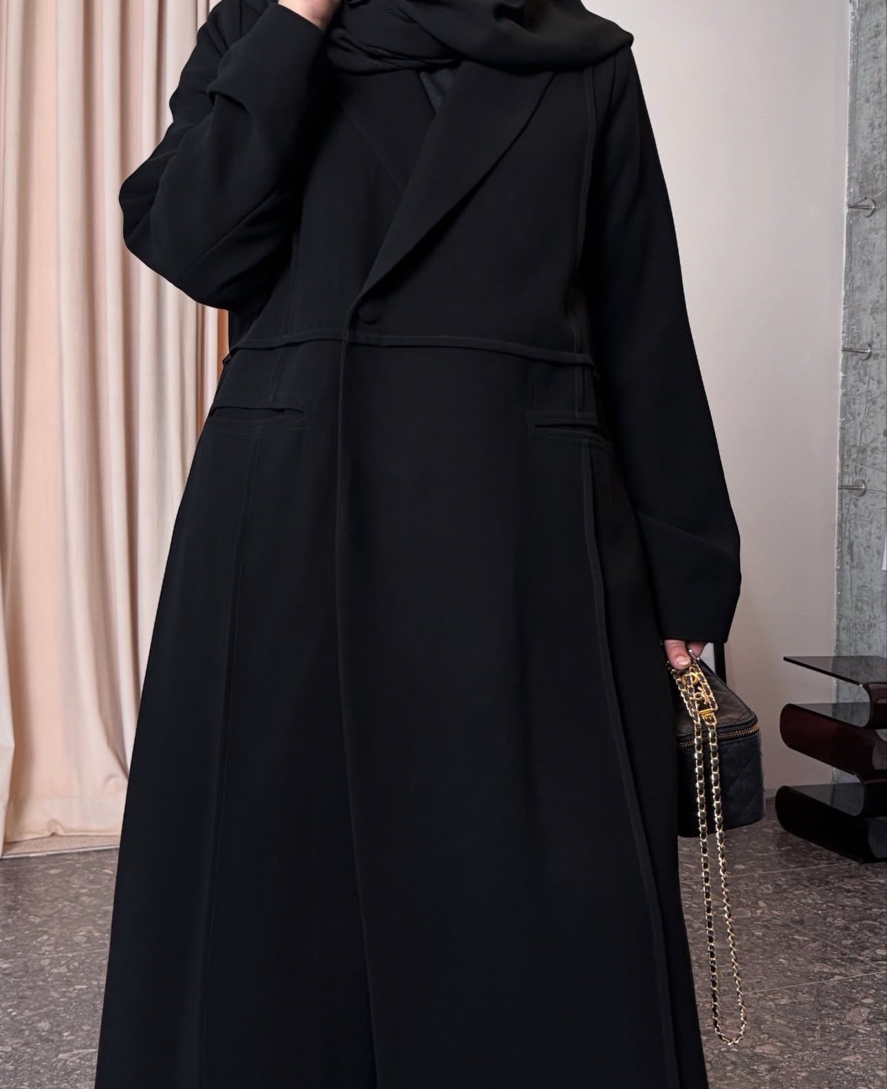 عبـايـه عمليـه وانيقه بنـفس الوقـت ، بطناها بحيث تـكون واقفه وتحلي الزول واخترنا اجـود انواع الكريـب و سـواده عالي جـداً